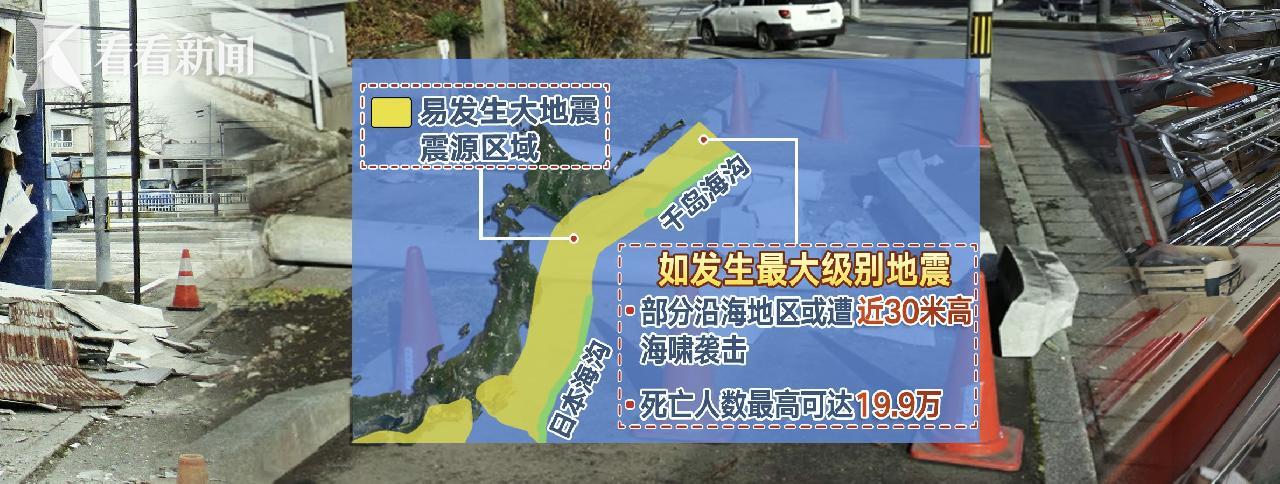 根据日本政府的估算,日本海沟和千岛海沟发生最大级别地震的情况下,北海道和岩手县部分沿海地区可能遭到近30米高的海啸袭击,死亡人数最高可达19.9万。但是,如能及时示警和避难,遇难人数有望减少八成。