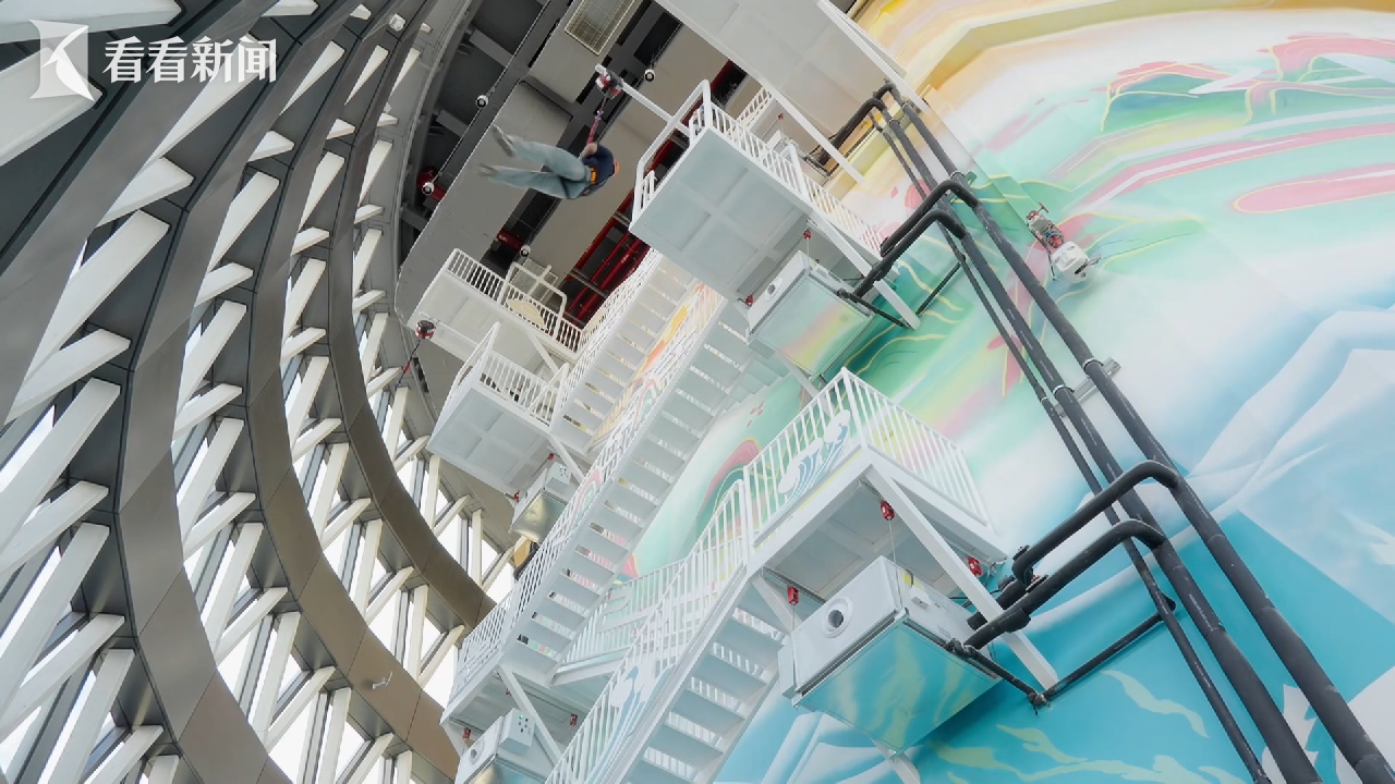 工业遗产融合了现代设计,让原先高耸的烟囱成了游客竞相登高远望的瞭望台,年轻人可以尝试凌云步道和蹦极等极限挑战,而亲子家庭,也能在这里快乐遛娃。乐营探索乐园店长徐晟君介绍,项目接待量已超万人次,未来还将推出“夕阳场”、“流星雨夜场”等特色时段,充分利用滨江的自然资源提升体验。