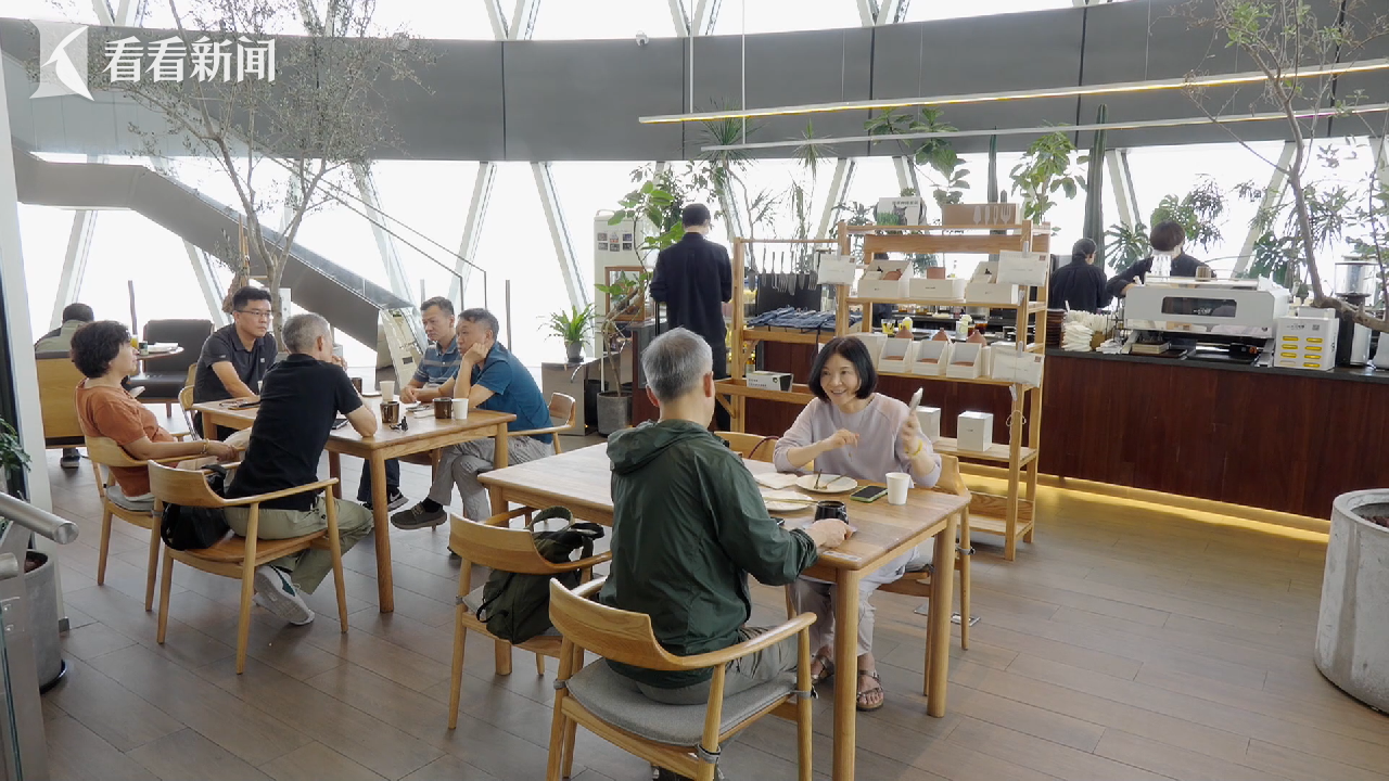 挑战完各种游玩项目后,还可以去楼里的一尺花园咖啡馆,欣赏得天独厚的地理位置带来的美景。有消费者表示,能在这么高的地方边喝咖啡边欣赏吴淞口景色,体验非常独特,“宝山能有这样文艺又高档的地方,真的很好”。