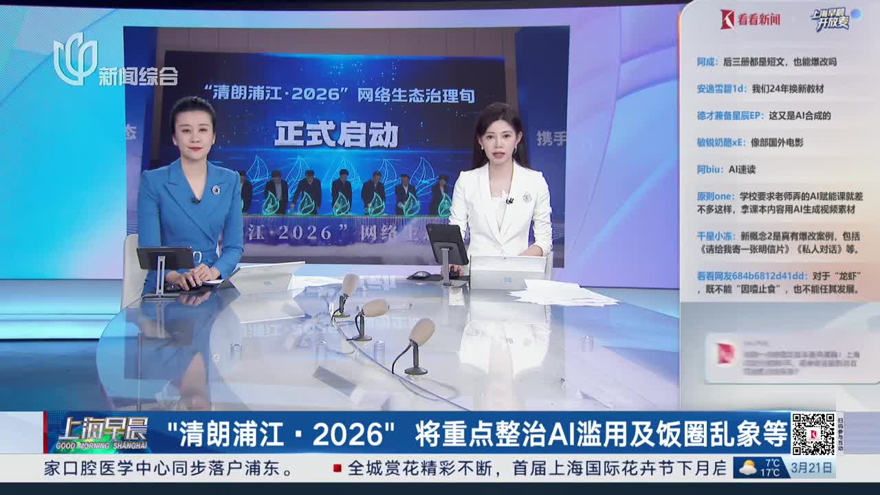 “清朗浦江·2026”将重点整治AI滥用及饭圈乱象等