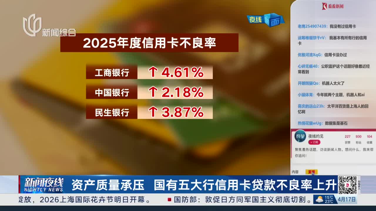 资产质量承压 国有五大行信用卡贷款不良率上升