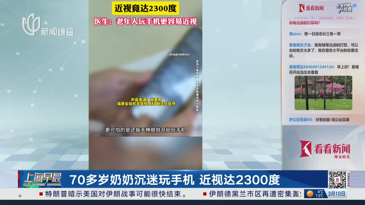 70多岁奶奶沉迷玩手机 近视达2300度