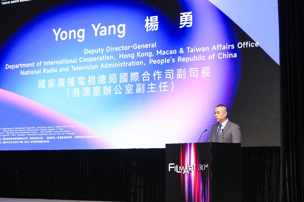 国家广播电视总局国际合作司副司长杨勇在致辞中表示,香港国际影视展创办三十年来,为提升中华文化传播力影响力作出积极贡献。国家广电总局连续四年在港举办此论坛,旨在充分发挥香港背靠祖国、联通世界的独特优势,以广电视听为载体,增进中外人文交流与文明互鉴。
