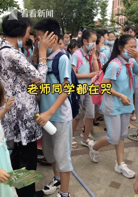 王女士说,那天学校放学第一个班出来的时候很感人,老师同学都哭成一团,当时她儿子从一旁经过就跟没事一样,她当时还有点惊讶,想着儿子怎么没哭呢。