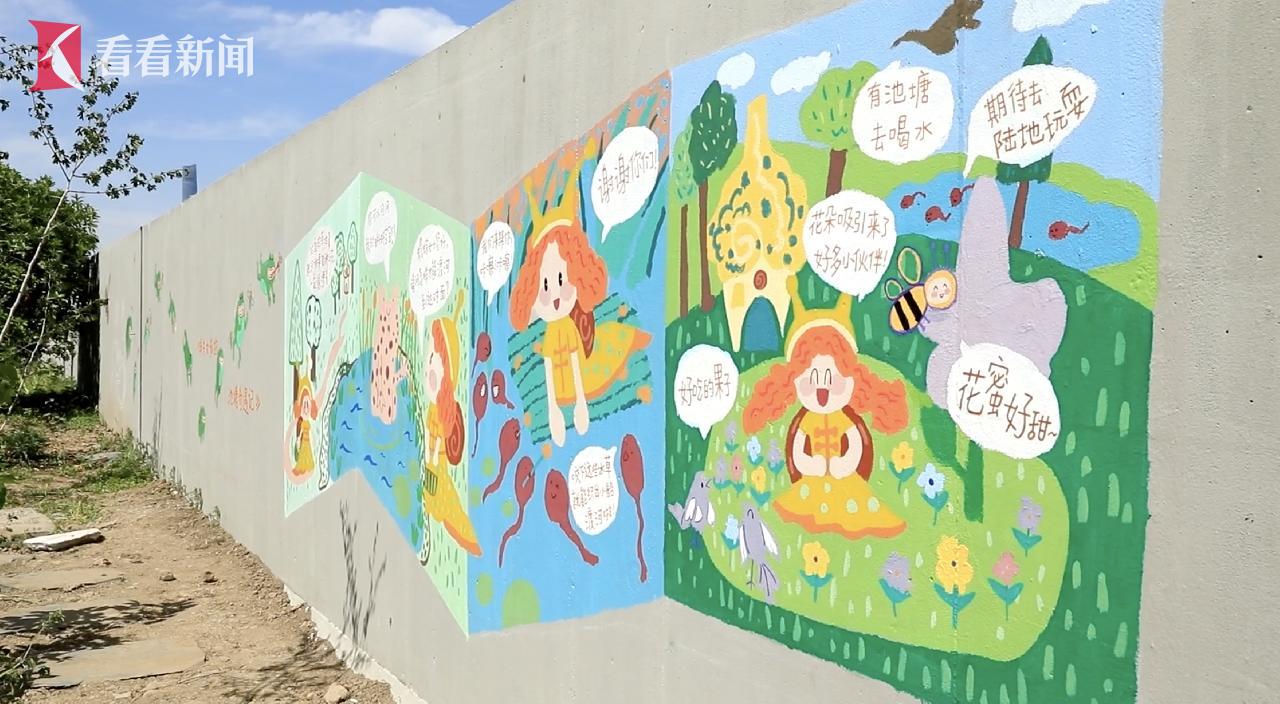 精心搭建的蜂巢和蚂蚁窝即实用又具有科普价值,成为颇具趣味性的城市打卡点。使用可降解瓦楞纸设计打造的獐子、狗獾、小灵猫等上海本土动物造型分布在灌木丛中,隐喻生态的脆弱,需要人类共同呵护。由艺术家带领儿童创作的墙绘故事和元素,增强了人与自然的互动。