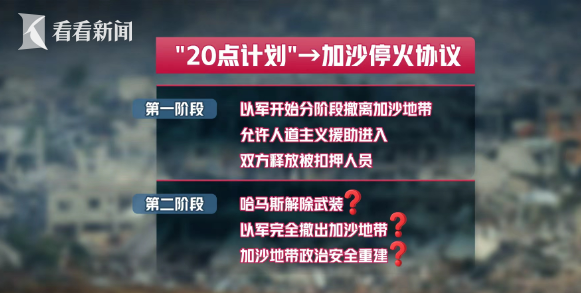 而结束冲突最关键的内容、也是分歧最突出的问题,如哈马斯解除武装、以军完全撤出加沙地带、加沙地带的政治安全重建等,被安排在了第二阶段。