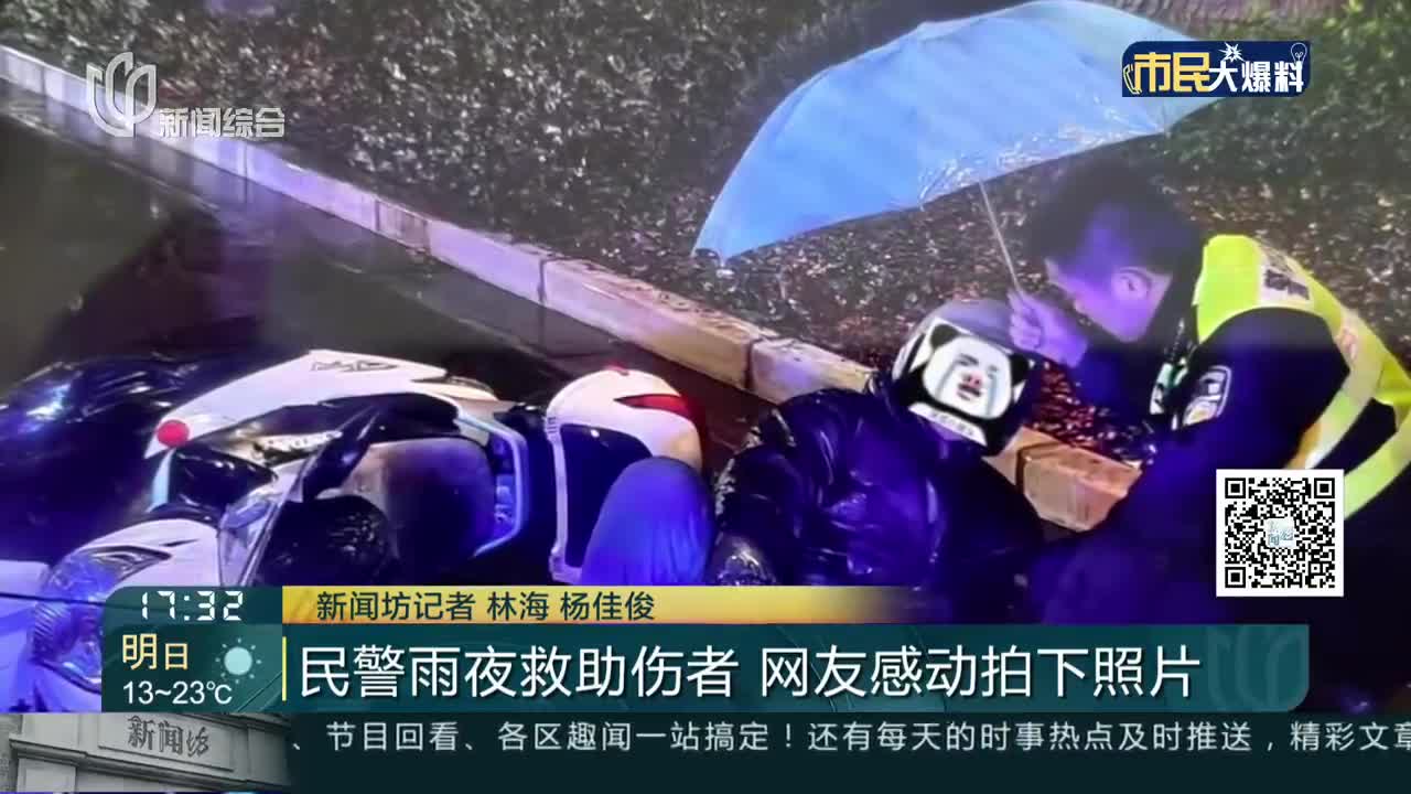 民警雨夜救助伤者 网友感动拍下照片