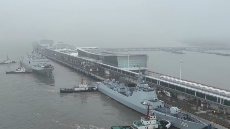 昨天上午,海军宿州舰、沂蒙山舰缓缓靠泊吴淞口国际邮轮码头,这也是两舰首次停靠这一上海重要地标。