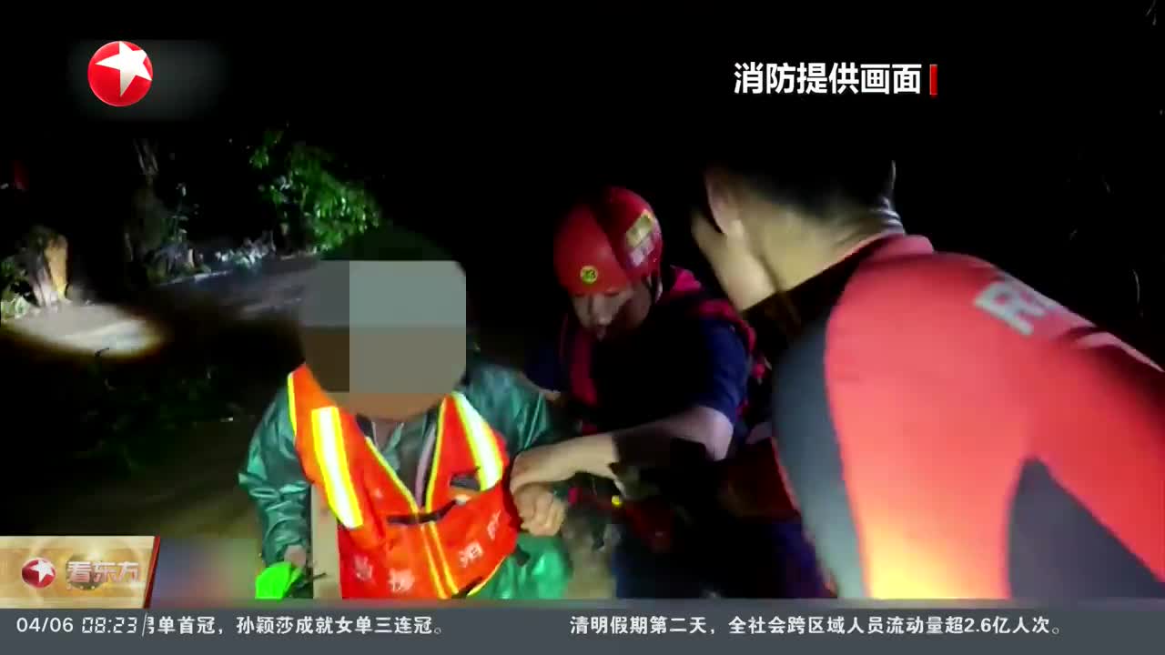 福建连城:四人遇河水上涨被困 消防紧急救援