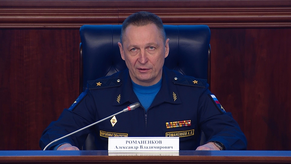 俄空天军防空导弹部队司令亚历山大·罗曼年科夫在发布会上展示了一架被击落无人机的残骸,并称其携带了6公斤的爆破炸药。