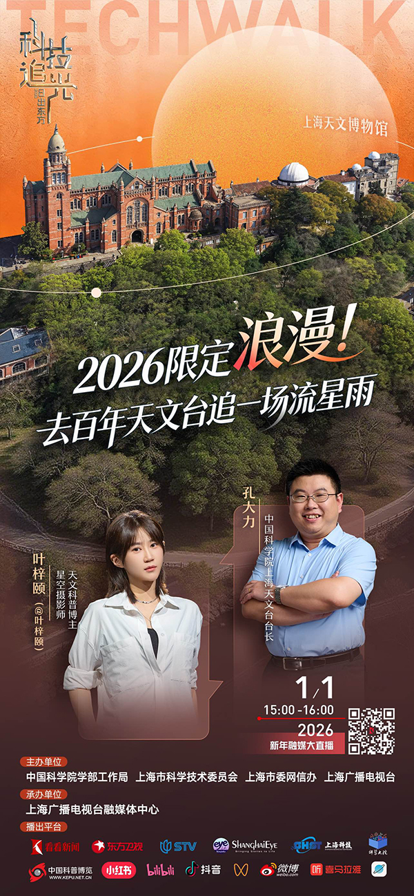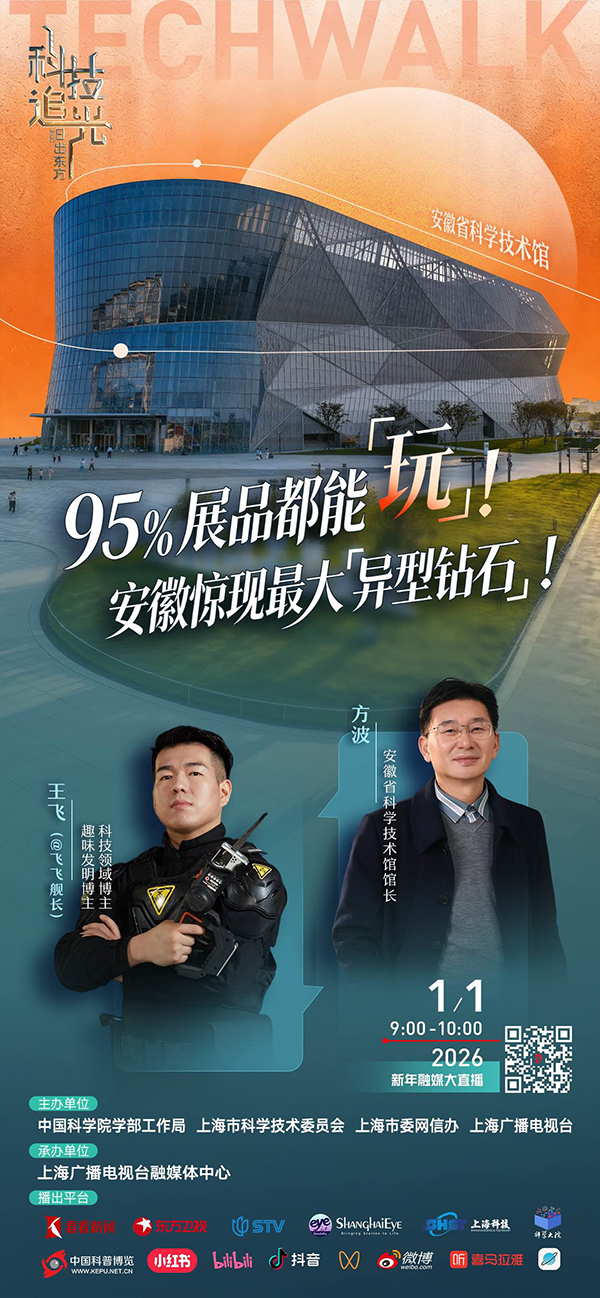 新年第一天,在有趣的地方,和有趣的朋友,一起思考更有趣的科学之问!年度TechWalk,一场属于公众的科技漫游,“日出东方 科技追光” 2026新年融媒大直播,1月1日6:00-16:00即将快乐出发!