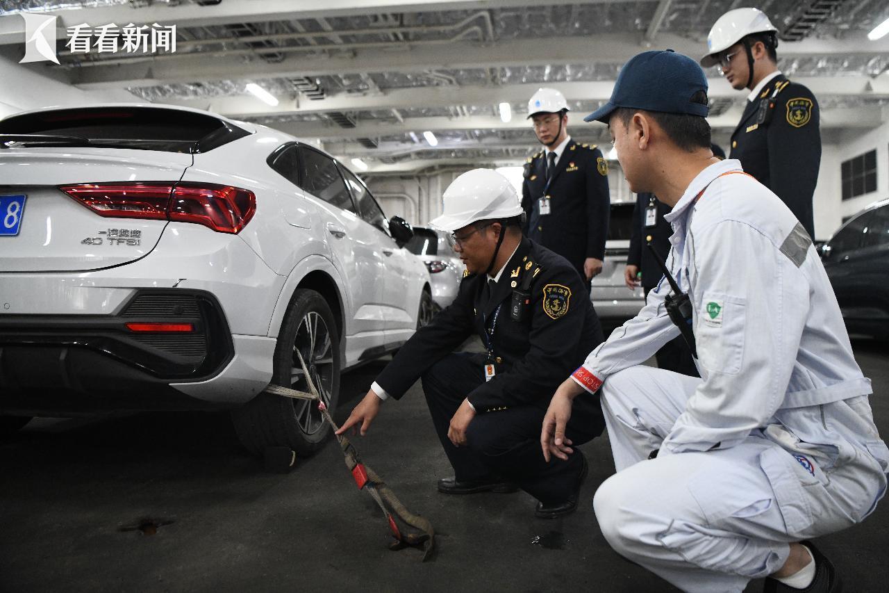 启航前,海口海事海事执法人员登上“顺龙海”轮,对航行设备、消防救生以及车辆绑扎系固情况进行“安全体检”,为首航保驾护航。