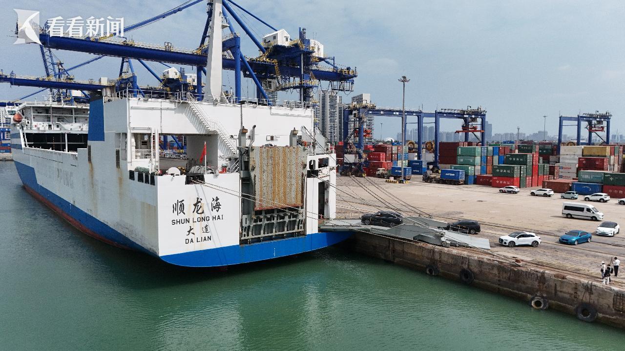 “顺龙海”轮是全长193米、载重超1万吨的节能环保型货滚船,拥有4层汽车舱,可装载约600辆轿车,宛如一座流动的海上“立体车库”。该航线计划每三天开行一班,从海口秀英港启航,约24小时后抵达广州南沙港。为满足车主多样化需求,除提供全程海运及港口装卸服务外,还新增了广州及深圳市内指定地点的送车上门服务。
