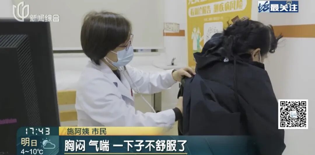 上午,记者在宝山区仁和医院看到,呼吸科与心血管内科的诊室外都有不少候诊患者。在呼吸科诊室,市民施阿姨正在就诊,她本身患有哮喘,早上出门一时疏忽,未做好防护,导致身体出现不适。