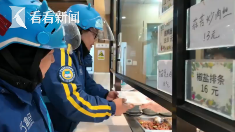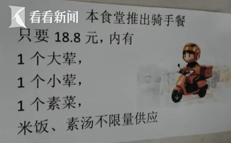 骑手们往往趁着用餐高峰期到来前,来这里休息吃饭,为此,食堂在这个时段保证快速出餐,让骑手能吃上一口热腾腾的暖心餐。