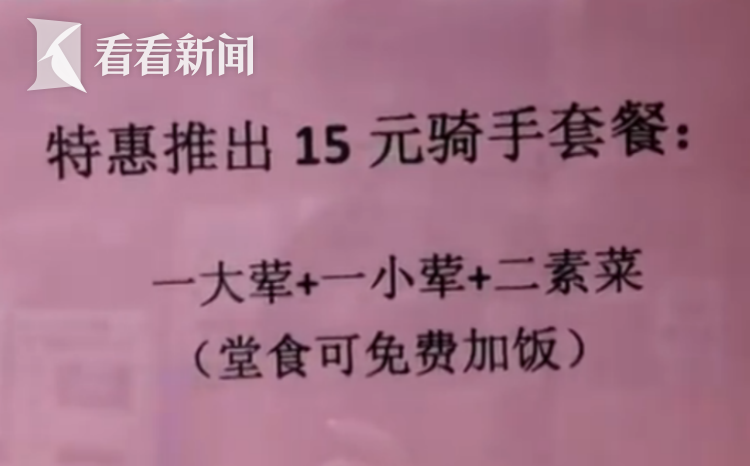 除了胶州长者食堂,附近的凯旋长者食堂,同样有一份专属于骑手的温暖等候。15元的套餐为骑手们做好了荤素搭配,1个大荤,1个小荤,2个素菜,工作日还免费赠送汤品。