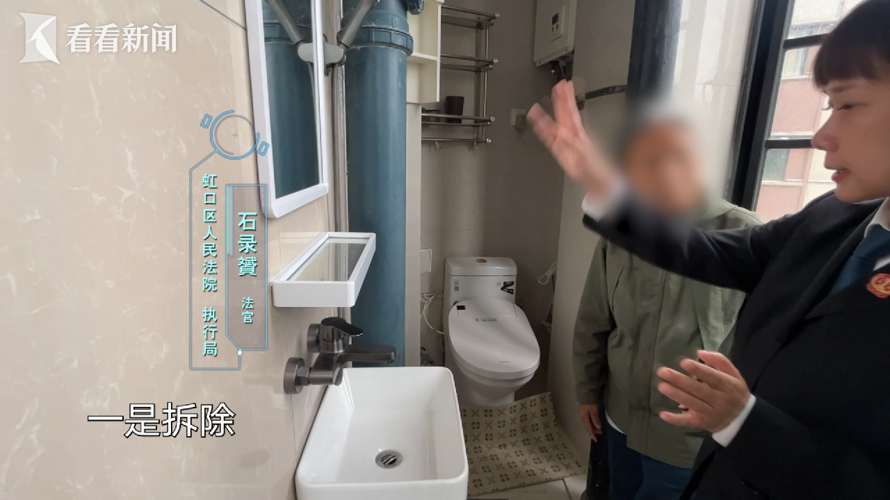 这天,执行法官来到杜阿姨家,也是要督促她拆除剩余的淋浴设施和台盆,确保不再漏水。