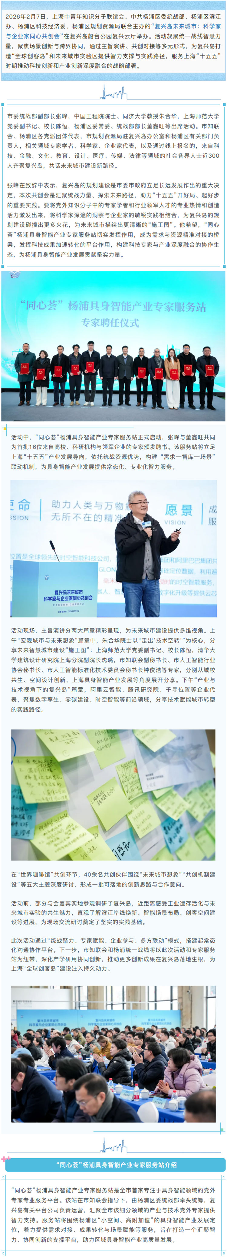 复兴岛科学家与企业家同心共创会上,全市首家具身智能产业党外专家服务站正式启动→
