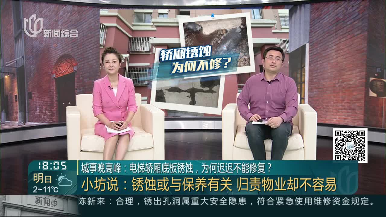 城事晚高峰:电梯轿厢底板锈蚀,为何迟迟不能修复? 小坊说:锈蚀或与保养有关 归责物业却不容易