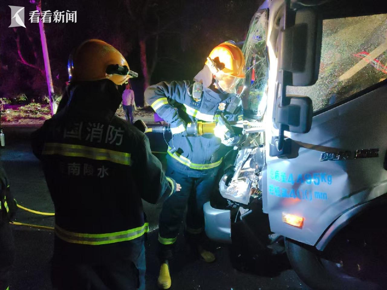 1月8日凌晨5时46分,海南G98高速公路陵水往三亚方向距离陵水服务区约1公里处突发一起交通事故,一名男子的腿部被卡在驾驶室内无法动弹,陵水消防救援大队迅速响应,仅用25分钟成功将被困人员救出。