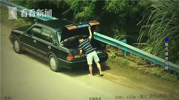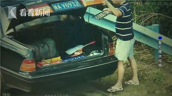 眼前的这名男子蹲在车前东张西望,他正在把车身前面的车牌进行拆卸,之后来到了后备箱旁边,将车牌放进了后备箱。通过监控视频我们可以看到,这名男子手上的车牌和车身上的牌子明显不一样。这段监控内容发生在在海南环岛高速美仁坡路段,男子在高速路上违停换车牌的一幕,恰巧被海南省公安厅交警总队指挥中心的民警在网上巡逻时发现,并记录下了全过程。
