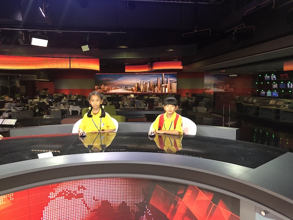 第一次坐上新闻主播台,成为小小主持人。