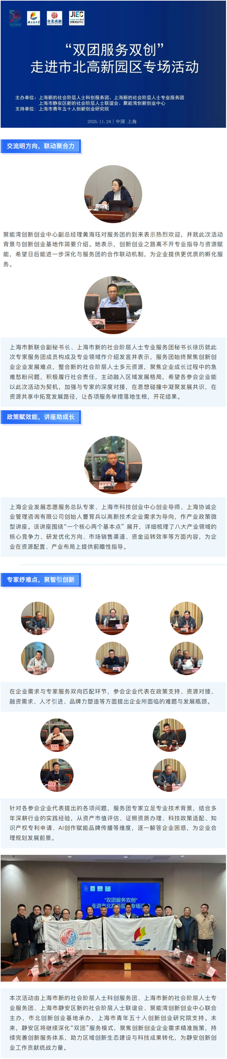 为进一步聚合多方优质资源,积极响应企业需求,11月24日上午,“双团服务双创”走进市北高新园区专场活动在静安区成功举办。该场活动是第六届上海创新创业青年50人论坛年度第47个矩阵项目。
