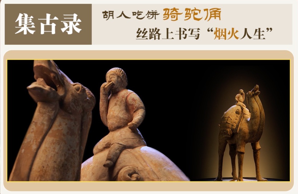 来自西域的,还有一件隋代陶俑——山西博物院馆藏的胡人吃饼骑驼俑,它刻画的是一位往来于丝绸之路上的胡商。隋是魏晋南北朝进入盛唐之间承上启下的过渡期,为唐代与异域文明兼容并蓄的恢弘气度奠定了基础。