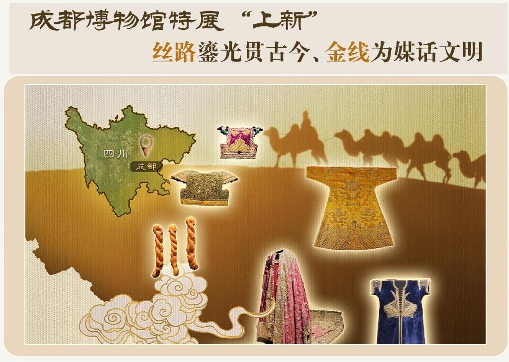 无论在西方还是东方,黄金,都为权力和财富代言。从日落之地马格里布到埃及,从阿尔及利亚到阿拉伯半岛,再从印度到中国,沿着丝绸之路的地理脉络,一件件熠熠生辉的袍服,以金线串起。一场以"金线"为媒的中西文明对话,正在成都博物馆展开。
