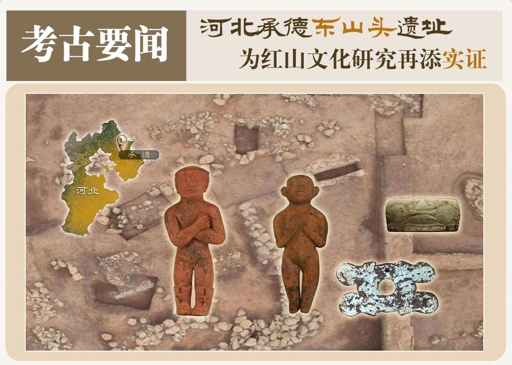 坎祭遗存、石块堆塑地母,还有陶塑男女人像,一项项红山文化“首例”,让河北承德的东山头遗址再次聚焦考古界的目光。目前,考古人员基本明确了遗址的布局结构,发现各类遗迹69处,出土陶、石、玉器等遗物一百多件,红山文化研究再添实证。