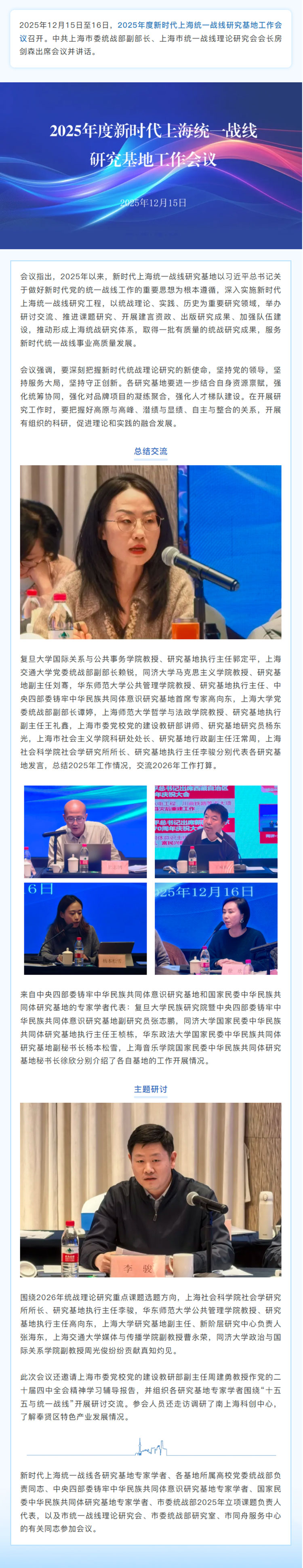 新时代上海统一战线研究工程,2026年怎么干?会议深入研讨→