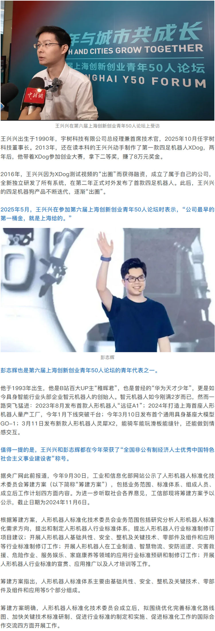 公示名单显示,来自宇树科技股份有限公司的王兴兴和来自智元创新(上海)科技股份有限公司的彭志辉拟任该委员会副主任委员。