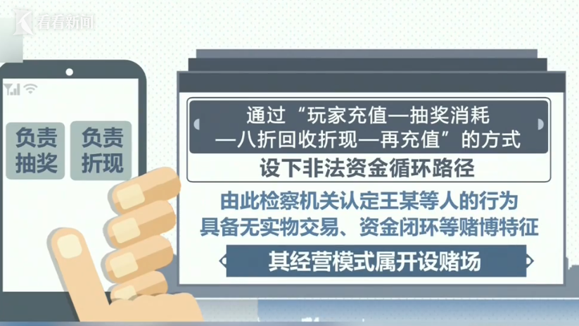 这两个涉案App,一个负责抽奖,一个负责折现,通过“玩家充值--抽奖消耗--八折回收折现--再充值”的方式,设下非法资金循环路径,由此检察机关认定王某等人的行为具备无实物交易、资金闭环等赌博特征,其经营模式属开设赌场。