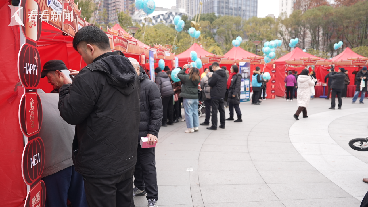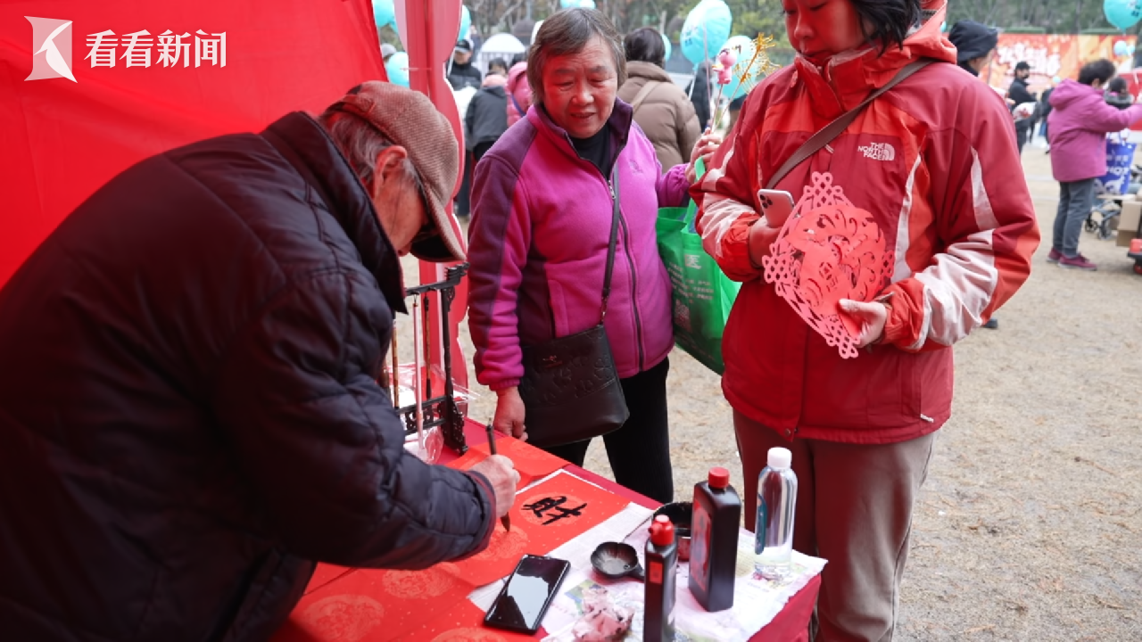 上午九点,普陀区长寿公园里热闹非凡,现场19个互动摊位,有的设计了桌上冰壶、套圈等趣味横生的小游戏,有的则正在为居民们提供写春联、理发等公益便民服务。有刚刚体验过免费理发服务的市民忍不住连连夸赞:“这手艺就是高等的手艺,节前剪个头才能清清爽爽地过年。”