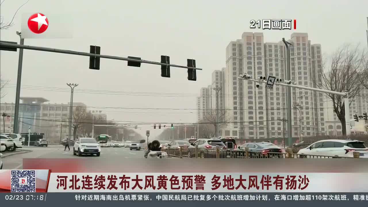 河北连续发布大风黄色预警 多地大风伴有扬沙