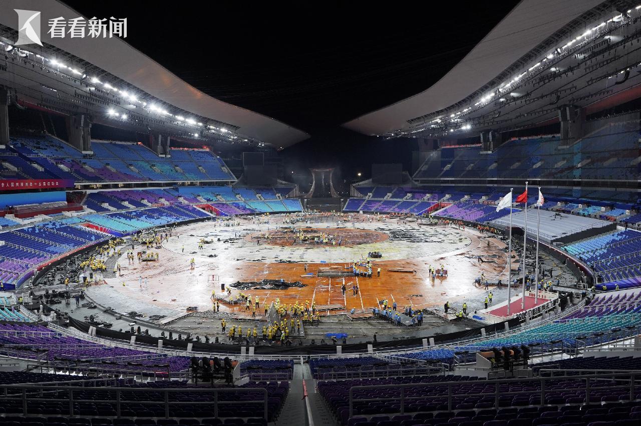 在本届全运会的保障工作中,还有一项“超级任务”也是由中建八局来完成的:当11月9日晚上开幕式结束后,需要在第二天18点前,实现全运会开幕式舞台拆除及清运工作,让场馆以新的完美状态迎接后续的田径赛事。据了解,开幕式场芯舞台总面积达1.8万平方米,其中水舞台区域近1万平方米,舞台结构精密复杂,拆除过程需在完全保护下方球场沙地与跑道的前提下,完成所有构件拆解及清运,堪称全运史上最复杂的舞台拆除。为此,他们与舞台搭设单位、开幕式团队等进行多轮沟通,并对转场流程进行全方位、全链条的精密推演,制定以小时为单位的精准施工方案,将场地科学划分为4个大区、26个细分区域,设置4条运输通道、2大场馆环线,由中心及边缘双向同步拆除,各大区平行施工。最终于10号11时完成全部任务,让“转场奇迹”如期实现。