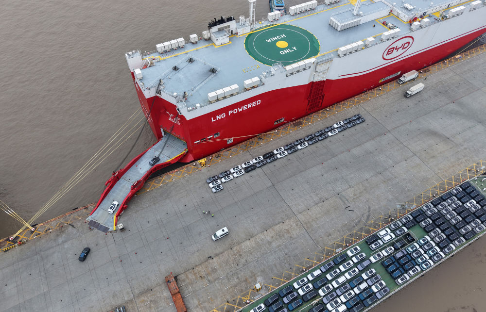 春日清晨,海岸上飘散着些许雾气,上海外高桥的海通汽车滚装码头上,已是一派繁忙,一辆辆新能源汽车缓缓驶入比亚迪“长沙号”。这艘去年才下水的红色巨轮,是全球现役最大的汽车滚装船之一,很快将载着6000多辆“中国智造”新车前往意大利、西班牙等地。