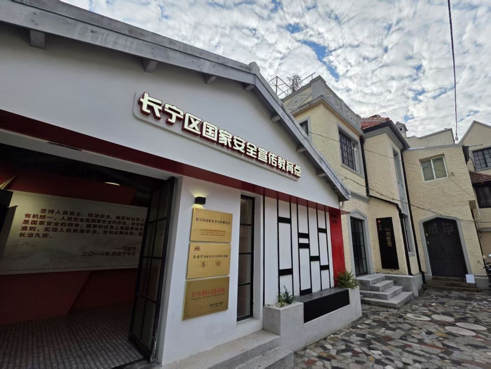 位于三层小楼南墙外侧的长宁区国家安全宣传教育点。新华社记者 王默玲 摄