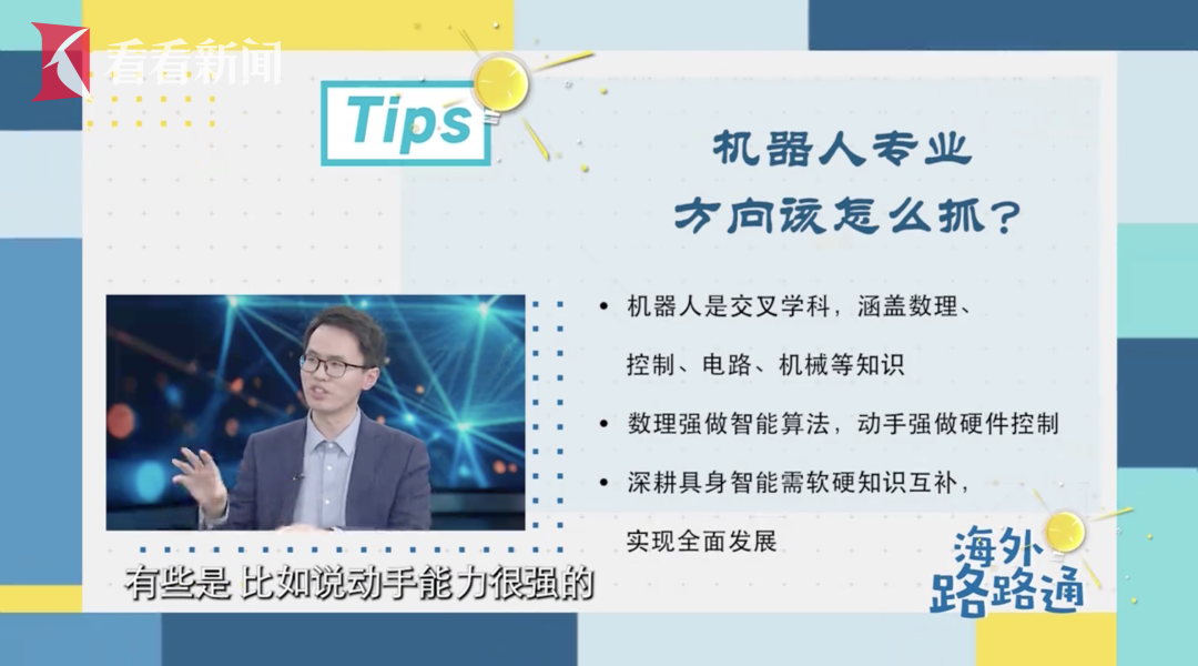 面对这个被反复追问的热门话题,《海外路路通》开启了“AI请回答”系列,第一期节目就请来了两位业内专家——上海人工智能研究院副总工程师蔺道深老师,以及上海科技大学信息科学与技术学院研究员、博士生导师石野老师,一起聊聊机器人专业的真相与未来。