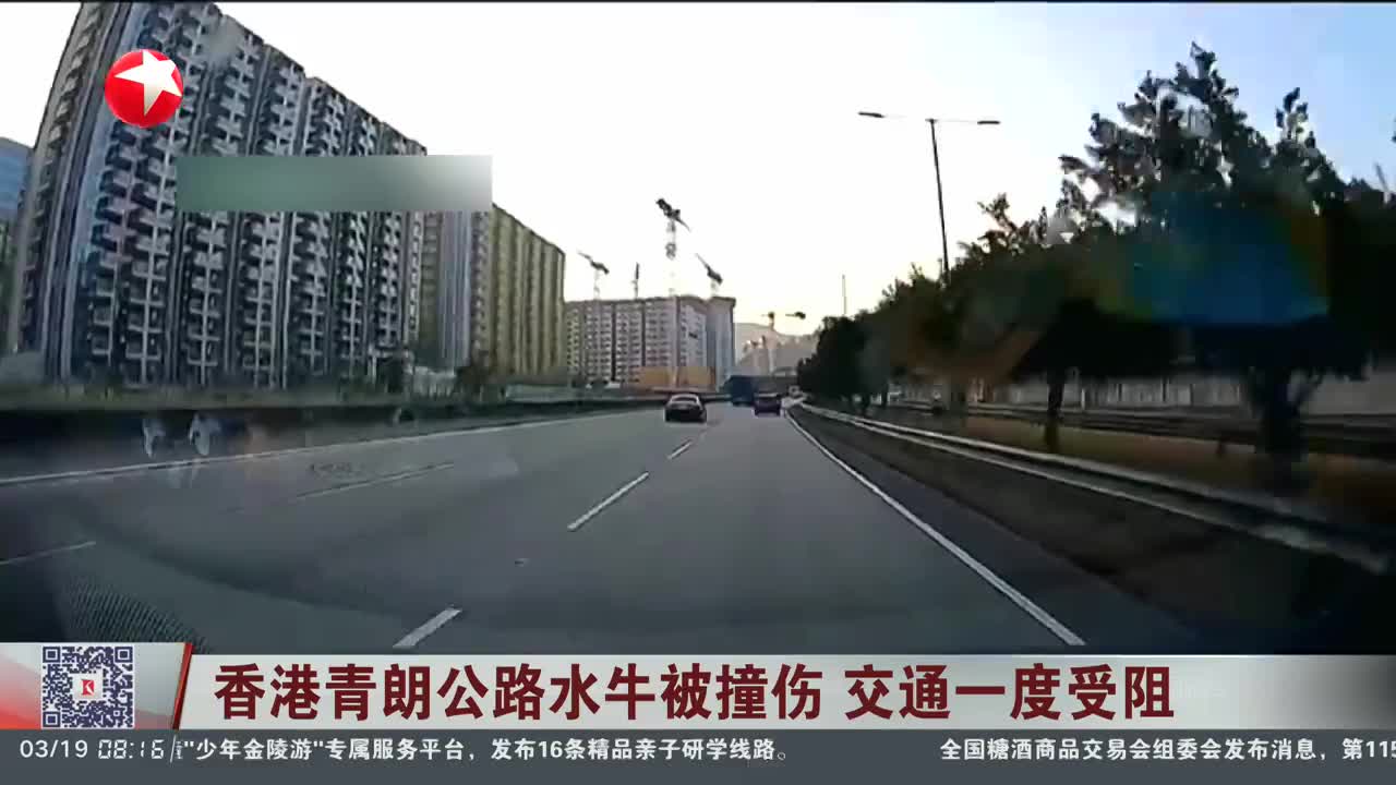 香港青朗公路水牛被撞伤 交通一度受阻