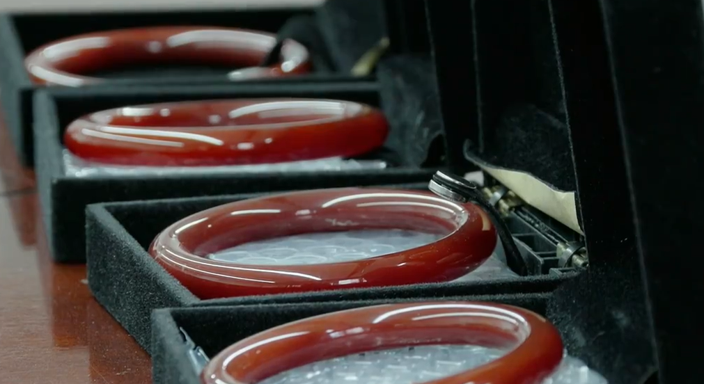 直播间实况:我手上的南红赤玉,南红赤玉在明年它一定是很贵很贵的,你们不要小看这个东西,就这一颗珠子在美国,一颗珠子7000块钱人民币。