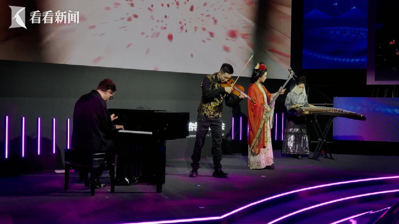 大会上,四位中外视频博主同台献演的音乐开场秀,将东西方乐器的韵律交织在一起,呼应大会主题:众声成乐。