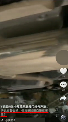 视频里,一辆白色小轿车正在改装,并配有“炸街”的轰鸣声。视频录制后,发布人还@交警部门,称“改装RES中尾段双鼓阀门排气声浪。听说交警会抓,但我想知道交警在哪里?”