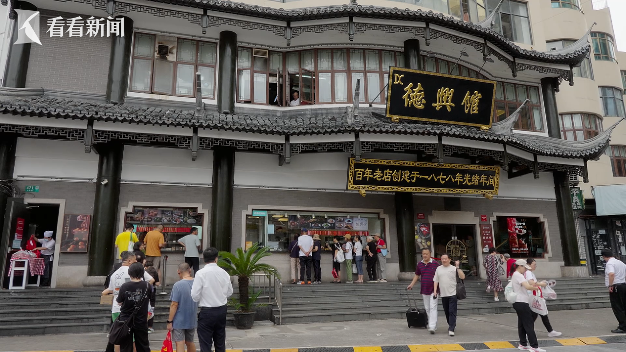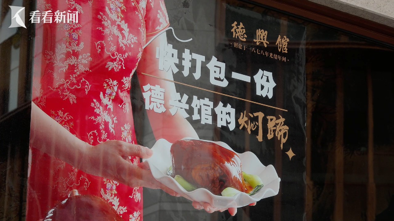 这是演员肖战在某谍战剧预告片中的台词。这个片段在社交媒体上曝光后,德兴馆的焖猪蹄就红出了圈。有南京游客表示是冲着台词来打卡的,还有海南游客是受朋友——肖战的粉丝所托前来代购。