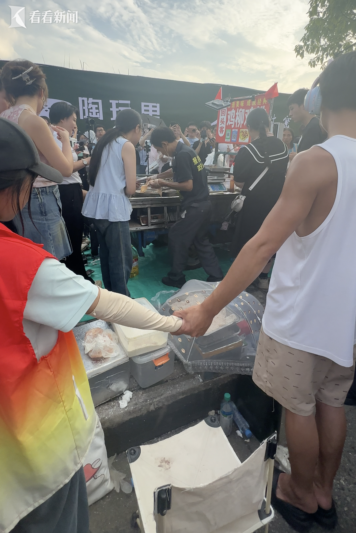 最近,景德镇的“鸡排哥”因为超值的情绪价值火了。10月1日是国庆长假第一天,“鸡排哥”的摊位前人气火爆。来自当地学校的大学生和外卖小哥等当起了志愿者,手拉手充当“鸡排保镖”维持秩序。