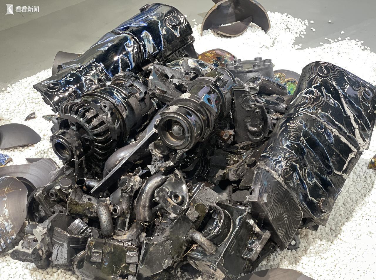 现场展示了百余件独具匠心的艺术家全新黑陶作品。像《暗痕》系列,运用文字起源时期的符号作为装饰,结合青花工艺,赋予黑陶历史厚重感与现代审美。 黑陶与高温颜色釉融合,颜色更加丰富,为艺术家创作提供了更广阔的空间。