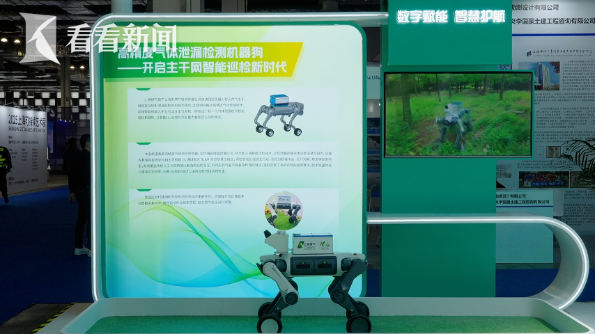 在保障超大城市的安全运行上,展会上也带来一批最新的智能方案。像眼前这个机器人,是上海燃气研发的首个气体泄漏检测智能巡检机器狗,通过融合高精度气体传感技术和北斗定位系统,可实现更精准、更早期的泄露预警。
