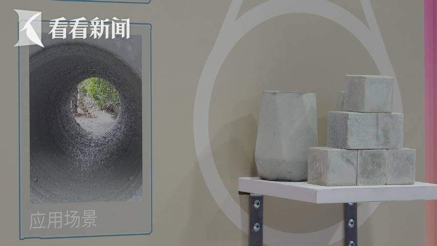 眼前这个模具,是上海首创研发、也是在展会上首次亮相的“地聚增强复合砂浆材料”制作而成的,和普通的水泥建材相比,它的凝结时间只需要几个小时,而强度却要提升30%以上。