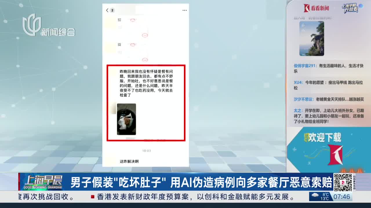男子假装“吃坏肚子”用AI伪造病例向多家餐厅恶意索赔