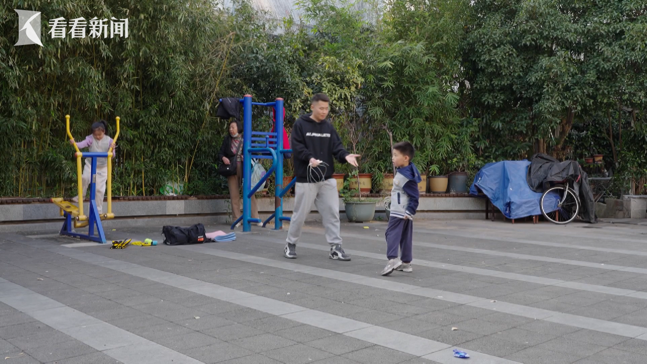 “我先带你热身,好吗?”周五刚放学,一年级的枫枫回到小区,已经有教练等着给他上一对一跳绳课。枫枫说:“因为在学之前,我基本就是这样跳的……很容易断。学了以后更轻松了,现在最多能跳120个。”